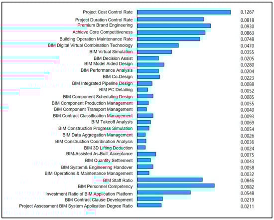 In the evaluation index system of the BIM application capability maturity of assembly building established by combining the principle of balanced scorecard with hierarchical analysis and entropy weighting method, according to the overall analysis of the results, the proportion of each index at the guideline level is not obvious, and the learning and growth dimensions and internal business process dimensions account for the highest proportion, which indicates that the organization and implementation of BIM and the actual application effect in assembly building projects are essential to improve the maturity level of the project. Among the 31 indicators, project cost has the highest weight, followed by project duration and the ability of BIM practitioners, and the main purpose of applying BIM in assembly projects is to reduce project cost and shorten the construction period; among the stakeholder dimensions, the proportion of high-quality brand projects is larger, and the successful application of BIM not only improves the rate of cost control and duration control of the project, but also brings more benefits to the owner. Therefore, in the field of assembly construction, attention should be paid to the establishment of the application environment of BIM so that its value can be utilized at different stages and the cost and duration of the project can be controlled through these measures to create a high-quality project brand, as shown in Figure 3.