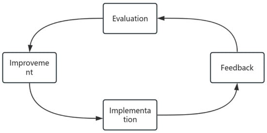 The cycle of “Evaluation → Improvement → Implementation → Feedback” is repeated continuously to realize the continuous improvement of BIM application maturity in a real sense. Through scientific methodology and problem-oriented thinking, various problems of BIM application are systematically divided and integrated, and the characteristics of the problems are studied in depth so that effective solutions are put forward to improve the efficiency of BIM in assembly buildings. It mainly includes the construction of a BIM application environment, strengthening the localization of an enterprise BIM platform, the depth of “BIM+” technology application, and actively organizing training and communication, as shown in Figure 12.