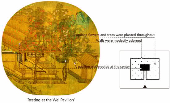 - Zheng, Q. The research of the evolution of the spatial boundaries of the literati’s residential and recreational buildings in the Song Dynasty based on the comparative study of architectures in Song Dynasty paintings. Archit. J. 2021, S2, 170–175. [Google Scholar]