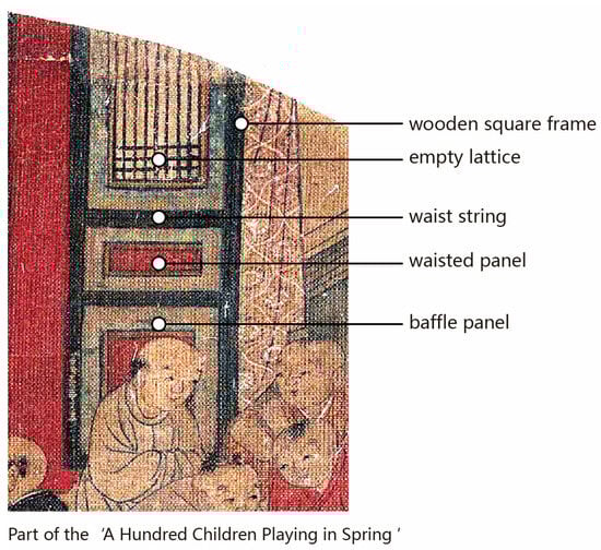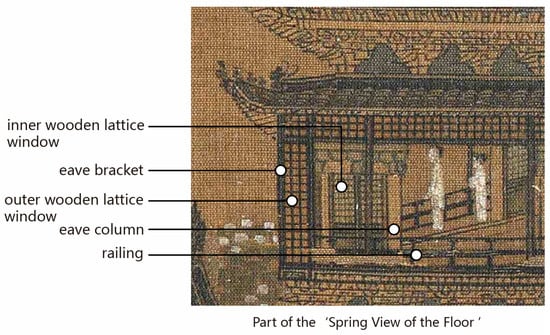- Zheng, Q. The Research of Exterior Components and Space Under the Roof of Asian Timber Architectures-Using the Paintings in Southern Song Dynasty as Basic Materials. Master’s Thesis, Southeast University, Nanjing, China, 2018; p. 98. [Google Scholar]