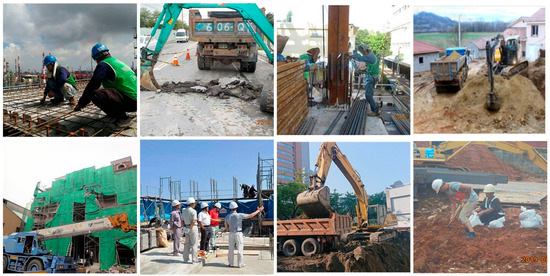 - Creative Commons (CC) Licensed Images: Additional images were obtained through keyword-based searches (e.g., “Construction site images”, “Construction machinery images”, and “Building equipment images”). Only images with CC licenses were selected to ensure compliance with copyright regulations.