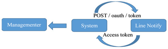 In the era of smartphone ubiquity, Line is widely used for communication in Taiwan, making sending warning messages via Line more efficient than through websites or cloud-based alerts. Line Notify is an official Line account that connects users with specific channels, instantly sending notifications to users when there are messages or actions. Line Notify is a simple Line Bot that uses APIs and requested tokens to send notifications to groups or individuals (Figure 24).