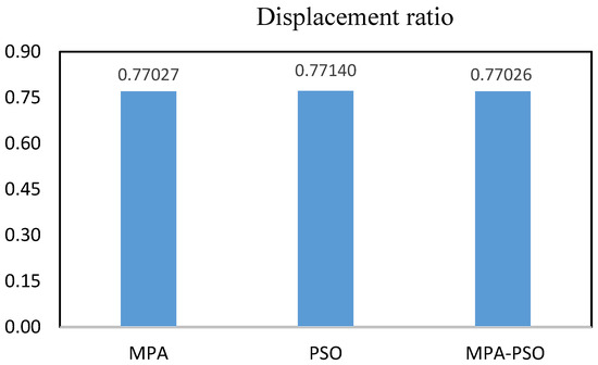 Conversely, the PSO algorithm exhibits a slightly higher maximum displacement ratio of 0.77140. While the difference appears marginal, it implies a potentially lower accuracy in identifying the global optimum compared to MPA and MPA-PSO. This difference could be attributed to its tendency to converge prematurely to local optima. This phenomenon, often referred to as premature convergence, can hinder the algorithm’s ability to explore the entire search space and identify the global optimum.
