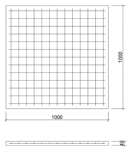 Geometric dimensions and reinforcement of the RC slab (unit: mm).