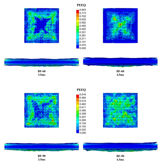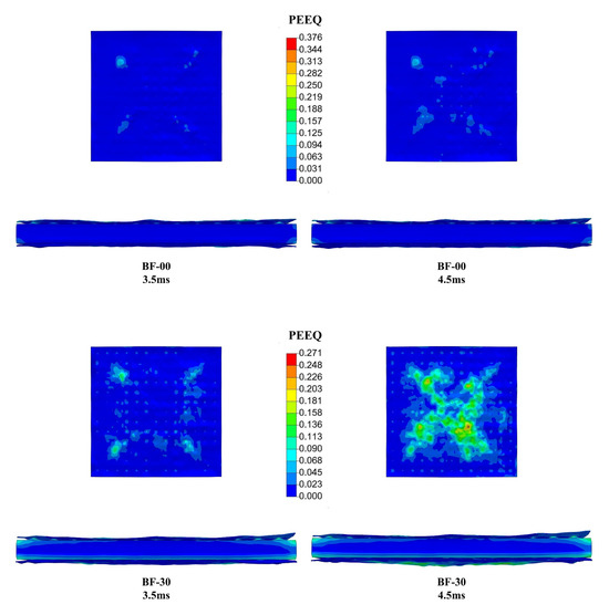 where σ0 is the initial yield stress; β is the hardening parameter; Ep is the plastic hardening strain modulus; εeff is the equivalent plastic strain; is the strain rate; C = 40.4 s−1; and P = 5 [34].