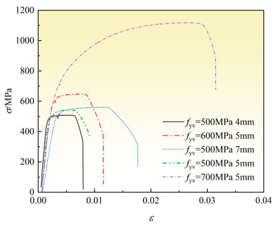 - Shen, H.; Zhang, X.; Wei, H.; Jiang, Y.; Huang, W. Study on mechanical behavior of high strength stirrup confined concrete under axial compression. Build. Sci. 2024, 40, 151–159. [Google Scholar]