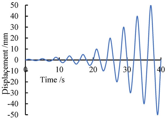 - Normal loading stage. This stage is divided into two steps for load application. First, a 25 kN axial load is applied at the top of the column. Second, a displacement-controlled loading method is used at the beam end to apply the load. The initial displacement amplitude is 5 mm with each subsequent level increasing by 5 mm as the controlled displacement until the specimen fails, and the loading scheme is illustrated in Figure 5.