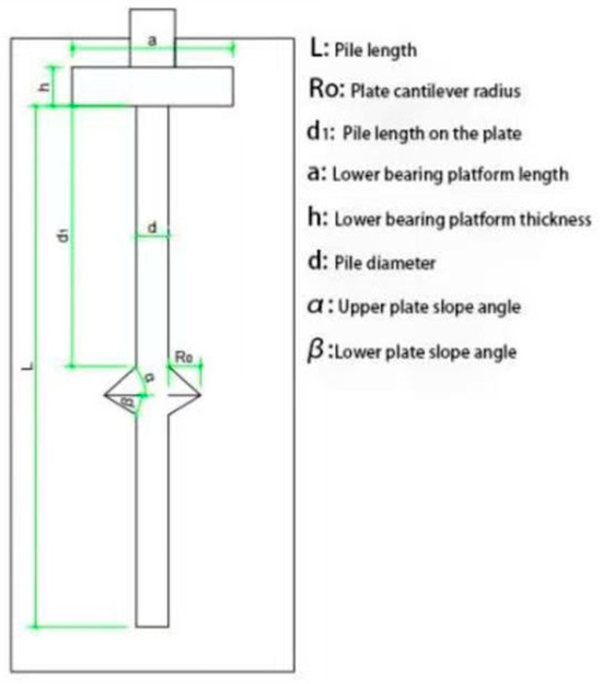 CEP piles, as a novel type of concrete expanded pile, are based on conventional concrete drilled piles, with bearing plates formed at specific positions along the pile shaft using specialized equipment. The key advantage of CEP piles lies in their flexibility to adjust both the size and position of the bearing plate according to soil conditions, thereby enhancing bearing capacity and reducing settlement [1,2]. The construction process involves a combined drilling, expanding, and cleaning machine, which simultaneously forms the pile and the bearing plate [3]. This process reduces slurry discharge, lowers material costs, and aligns with national strategies for high-quality development. Current research on CEP piles primarily focuses on single piles, double piles, and pile groups [4,5], with limited attention given to the impact of the cap on the bearing capacity of CEP pile foundations. As a critical component of pile foundations, the cap serves as an essential connection between the superstructure and the pile foundation [6], and its influence should not be overlooked. Factors such as the position of the bearing plate, pile spacing, and cap dimensions play a significant role in the performance of low-cap CEP pile foundations. Therefore, this study uses ANSYS2022 finite element software to investigate the bearing plate position as a key factor, conducting a detailed comparative analysis of the bearing performance of low-cap (cap embedded in soil) CEP single-pile foundations. The results provide reliable theoretical support for future research and practical applications.