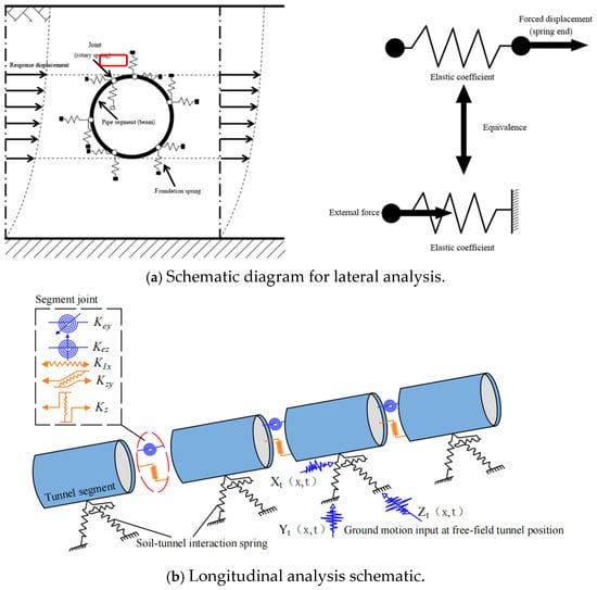 (4) In the future, the seismic performance of shield tunnels under complex geological conditions can be further discussed, especially the seismic response at the junction of soft and hard soil layers. It is suggested to strengthen the design and optimization of tunnel joints under different geological conditions and explore new materials and structural forms to improve the stability and safety of tunnels under strong earthquake conditions. In addition, field experiments based on dynamic monitoring data should be performed to provide a more accurate theoretical basis for the seismic design of tunnels.