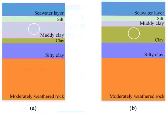 Engineering geology profile. (a) Schematic of soil layer in cross-section 1; (b) schematic of soil layer in cross-section 2.