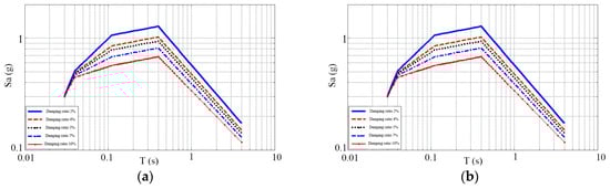 Site SL-2 level design benchmark acceleration response spectrum. (a) Horizontal design benchmark acceleration response spectrum; (b) vertical design benchmark acceleration response spectrum.