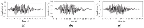 Seismic response curve of ground motion. (a) Horizontal earthquake element 1; (b) earthquake element 2; (c) vertical earthquake element.