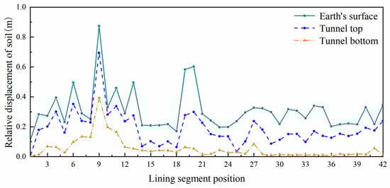 Displacement variation of the soil layer throughout the entire tunnel area.