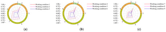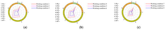 Irregular subsidence of soil layers and seismic vibrations can greatly impact the service life of shield tunnel joints. Therefore, the rate of change in the tunnel lining’s diameter and the circumferential joint-opening amount can serve as the key parameters for assessing the lateral earthquake resistance of the shield tunnel. It can be clearly understood through Figure 14 and Figure 15 that under SL2 seismic excitation of section 1, when the joint bolt was in M24 working condition 1 with low stiffness, the maximum diameter change rate of lining segment was 2.073%, and the maximum joint-opening amount was 1.324 mm. In addition, the joint bolt was in M36 working condition 9 with large stiffness, the maximum diameter change rate of the lining segment was 1.752%, and the maximum joint-opening amount was 0.515 mm.