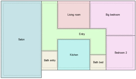 Hollow-core concrete blocks are the most common construction method for vertical walls in Lebanon. Almost all walls are made of masonry and use the same block shape. In Lebanon, there is wide use of these HBs because they represent many advantages, such as long service life, low cost, low maintenance, fire resistance, and ease of implementation []. Lebanese HBs vary depending on their dimensions. All types have the same length of 40 cm and same height of 20 cm but different widths. The most used types are HB12 (width 12 cm) and HB10 (width 10 cm), which are needed to construct the conventional double-wall structure. In our study, a conventional wall is replaced by a multilayer wall of single HB12 in addition to PCM, with or without insulation.