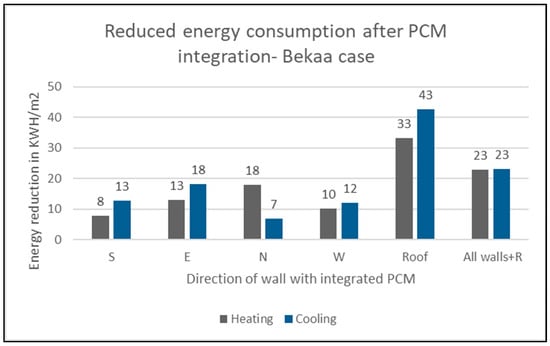 Reduced energy consumption in (KWH/m2) for Bekaa’s case after PCM integration.