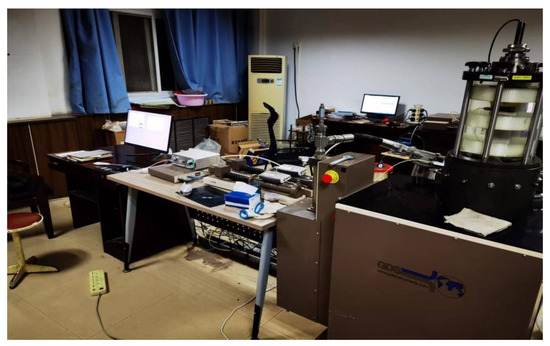 The GDS dynamic triaxial testing equipment used in this experiment is shown in Figure 4. The GDS dynamic triaxial tester can apply a maximum dynamic axial load of ±10 kN, with a frequency range of 0–5 Hz and an accuracy of 0.1%. The selected frequency range (1–5 Hz) corresponds to the main frequency of typical highway traffic loads. For vehicles with a wheelbase of 3–5 m and a speed of 60 km per hour (16.67 m per second), the basic excitation frequency is calculated to be 3.3–5.6 Hz (f = vehicle speed/wheelbase). This setting ensures that the experiment effectively simulates actual operating load conditions. The maximum deformation of the sample is 100 mm, the displacement resolution is 0.208 mm, and the accuracy is 0.07% of the interval. It can simulate waveforms, such as triangular waves, sine waves, normal waves, square waves, trapezoidal waves, and oblique waves. The experiment uses standard cylindrical specimens (50 mm in diameter × 100 mm in height).