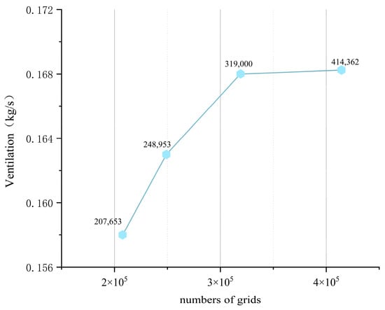 Calculated ventilation under different numbers of grids (diagram created by the authors).