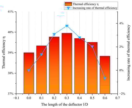 Variation in thermal efficiency with deflector length (chart created by the authors).