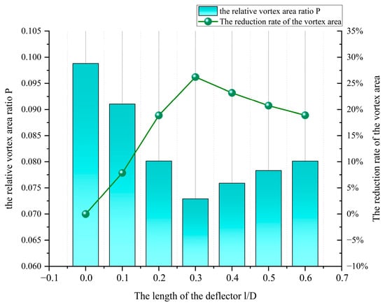 Variation in relative vortex area ratio P with deflector length (chart created by the authors).