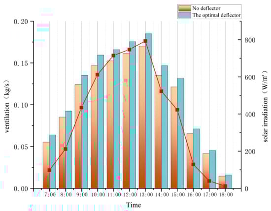 Variations in ventilation during operation of dual-channel solar chimneys (graph created by the authors).
