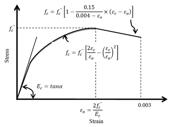 - Carreira, D.; Chu, K. Stress-Strain Relationship for Plain Concrete in Compression. ACI J. Proc. 1985, 82, 797–804. [Google Scholar] [CrossRef]