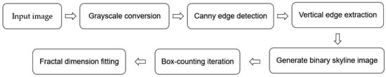 In the second phase, fractal theory and spatial hierarchy analysis were employed. Specifically, the box-counting dimension method was used to calculate the contour complexity of skylines at each viewpoint, while spatial hierarchy metrics were applied to quantify depth-wise spatial gradients.