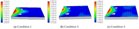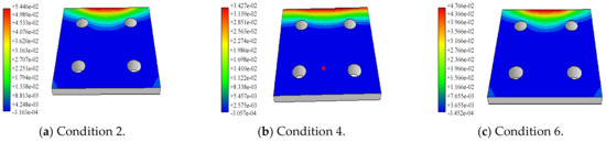 The principal stress of the B-type elastic joint is shown in Figure 9. Similar to the A-type snap-fit joints, stress concentration is mainly observed at the connection point between the elastic joint and the connecting plate.
