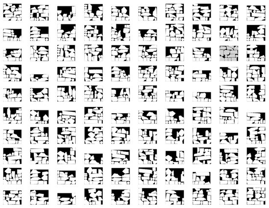 - Wang, Q.; Pantoja-Rosero, B.G.; dos Santos, K.R.M.; Beyer, K. An Image Convolution-Based Method for the Irregular Stone Packing Problem in Masonry Wall Construction. Eur. J. Oper. Res. 2024, 316, 733–753. [Google Scholar] [CrossRef]