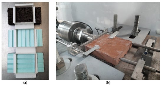 (a) Preparation of samples before casting; (b) set-up for the direct shear test.