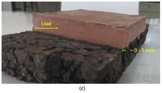 Specimens with an ICB isolation layer showed a much higher slippage level, but with a lower shear resistance (Figure 12b). In addition, the APICB panel layers did not debond due to chemical bond/friction between the ICB and the AAc, when the test was finished and the load was removed. The AAc layer almost returned to its original position (Figure 13c), i.e., with a low residual relative deformation. The surface roughness of the insulation board APICB provided a better bond [] between the ICB and the AAc, opposite to the APXPS shear behavior. Direct shear results are in accordance with pull-off findings (Table 5); i.e., in general, the values acquired for the behavior of the APXPS are almost double those from the results of the APICB.