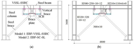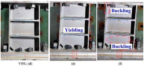 - Under frequent earthquakes, the frame, brace, and VSSL stresses and displacements in EBF-VSSL-SSBC and EBF-SC-SL are basically equivalent. Both frames dissipate energy through the slippage of high-strength bolts, and VSSL-SSBC remains elastic without significant yielding deformation.