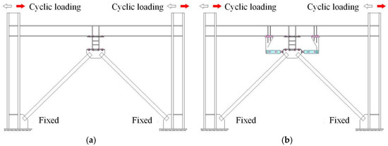 - Liu, S.W.; Chen, S.Y.; Zeng, S.Z.; Zhang, B.; Hu, S.J. Seismic performance analysis of K-shaped EBF with an innovative crack-resistant composition beam. J. Build. Eng. 2025, 101, 111818. [Google Scholar] [CrossRef]