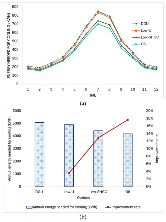 Figure 10a, the analysis revealed distinct trends in monthly and annual cooling energy requirements.