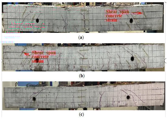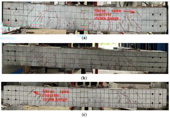 Failure modes of the externally prestressed beams reinforced on the side facade. (a) TRB-30-2. (b) TRB-35-1. (c) TRB-40-2.