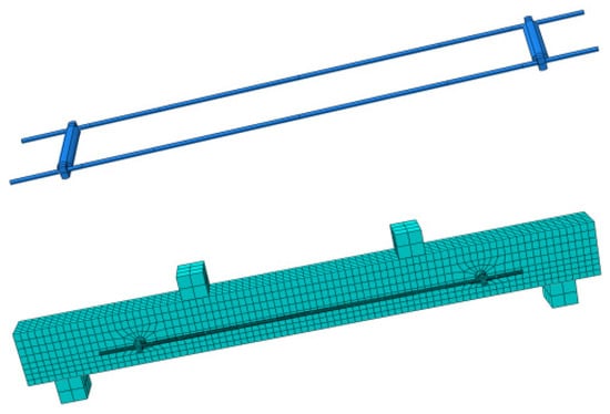 ABAQUS is capable of accurately simulating the nonlinear behavior of concrete beams during the stress process, including cracking, steel yielding, and concrete crushing, among other complex phenomena. Drawing upon the analysis, research, and calculations conducted by Kazemi et al. [34] and their research team, the ABAQUS software was utilized to simulate the failure process and shear capacity of the test concrete beams. The simulated results were then compared with the experimental results.