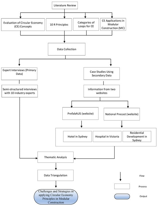 This study employed qualitative research methods to investigating sustainability in modular construction (MC) and assess the applicability of circular economy (CE) principles, particularly the 10R framework. As depicted in