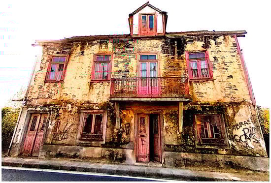 The last dwelling shown in Figure 3 is a good example of a resilient traditional Portuguese building. In fact, it is over one hundred years old. Since it has been abandoned and neglected for a long time, it has been fading slowly instead of facing a premature collapse. This example of a dwelling also has an additional particularity, which is that the timber structural elements of the exterior walls are covered with earth. Earth protects the timber by increasing its durability and fire resistance.