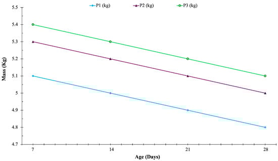 The weights of the specimens were measured regularly at 7, 14, and 28 days of age during the drying process, which was carried out under controlled laboratory conditions. Such a systematic approach allowed for a thorough understanding of the moisture loss over time and provided useful information about the drying behaviour of concrete. The gradual nature of the drying process is graphically represented in Figure 11, which illustrates the decrease in weight as a function of time.