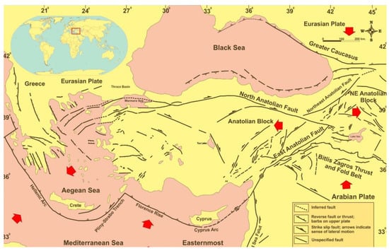 The tectonic system in which the Anatolian Block is located (Büyüksaraç et al. []).