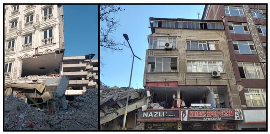 - Altunişik, A.C.; Arslan, M.E.; Kahya, V.; Aslan, B.; Sezdirmez, T.; Dok, G.; Kirtel, O.; Öztürk, H.; Sunca, F.; Baltaci, A.; et al. Field observations and damage evaluation in reinforced concrete buildings after the february 6th, 2023, Kahramanmaras-Turkiye earthquakes. J. Earthq. Tsun. 2023, 17, 2350024. [Google Scholar] [CrossRef]