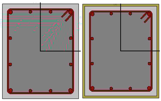 The cross-sections of the columns considered in the numerical analyses before and after reinforcement are shown in Figure 19.