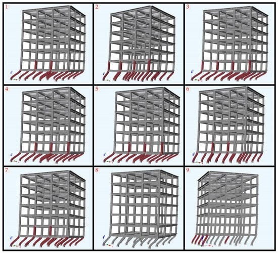 Due to the shear forces acting on reinforced concrete structures, the lateral displacement of the columns on the ground floor can lead to a collapse mechanism in the structural system. As shown in Figure 4, lateral displacement caused by shear forces can be observed in the lower columns.