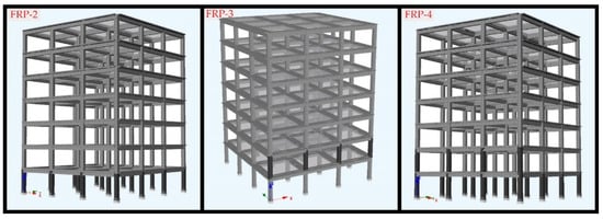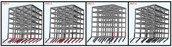 The use of fiber-reinforced polymer (FRP) composites for strengthening columns has become an effective method, as demonstrated by studies highlighting the advantages of FRP’s high strength-to-weight ratio, corrosion resistance, and flexibility [,], offering an alternative to traditional steel reinforcements for strengthening reinforced concrete structures []. FRP composites significantly enhance the flexural and shear capacities of structural elements and are particularly effective in harsh environmental conditions [,,]. The effectiveness of the FRP technique, among different retrofitting strategies, for seismic retrofitting of RC buildings, increasing ductility and shear capacity of columns has also been demonstrated in different studies [,,,,].