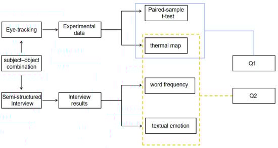 This study primarily consists of two parts: an eye-tracking experiment and semi-structured interviews. The eye-tracking experiment captures participants’ visual perception data regarding the value characteristics of a historical and cultural district using the Tobii Glasses 3 wearable eye tracker. After completing the eye-tracking experiment, participants underwent semi-structured interviews to obtain their subjective perceptions and evaluations on whether they recognized the district’s value characteristics. In this section, the experimental data generation process is detailed, including a description of the material acquisition and research methodology steps taken in order to lay the foundation for data analysis, as shown in the methodological flow chart (Figure 1).