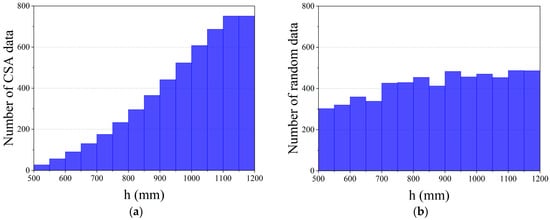 - The R2 values for D showed noticeable differences between the two datasets. In the CSA-based dataset, D2 had the highest R2 value of 0.6778, whereas in the randomly generated dataset, D1 showed the highest R2 value at only 0.0689. Additionally, D1 had the lowest R2 value of 0.2907 in the CSA dataset, while D4 had the lowest value of 0.0037 in the random dataset. The relatively low R2 value of D1 in the CSA dataset is likely due to the tendency of the cost optimization process to favor larger reinforcement bar diameters, depending on the values of h and , rather than producing a wide distribution of diameters.