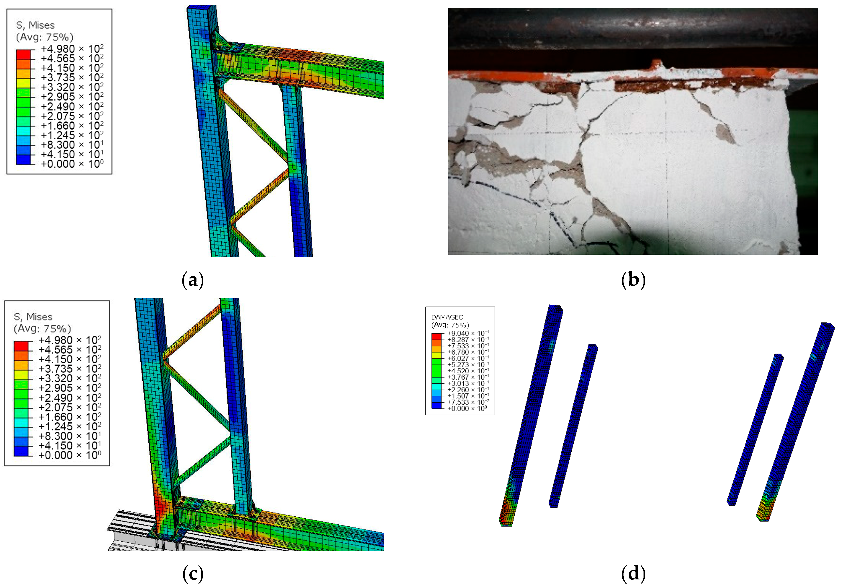 - Amer, M.; Chen, Z.; Du, Y.; Kang, S.; Mashrah, W.A.H. Experimental and numerical investigations on seismic behaviors of prefabricated composite CFT column V/Z-shaped truss. J. Constr. Steel Res. 2025, 227, 109364. [Google Scholar] [CrossRef]