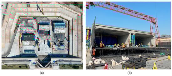 To validate the practicality and feasibility of the proposed BIM- and AR-based human–machine collaborative management system for pre-embedded components in submerged tunnel segments, this study conducted system deployment and field experiments at the Nansha Mingzhu Bay submerged tunnel project in Guangzhou. This project represents a typical large-scale submerged tunnel, featuring prefabricated segments approximately 100 m in length. The pre-embedded components exhibit diverse types, dense distribution, and complex spatial layering, providing excellent representativeness for system testing.