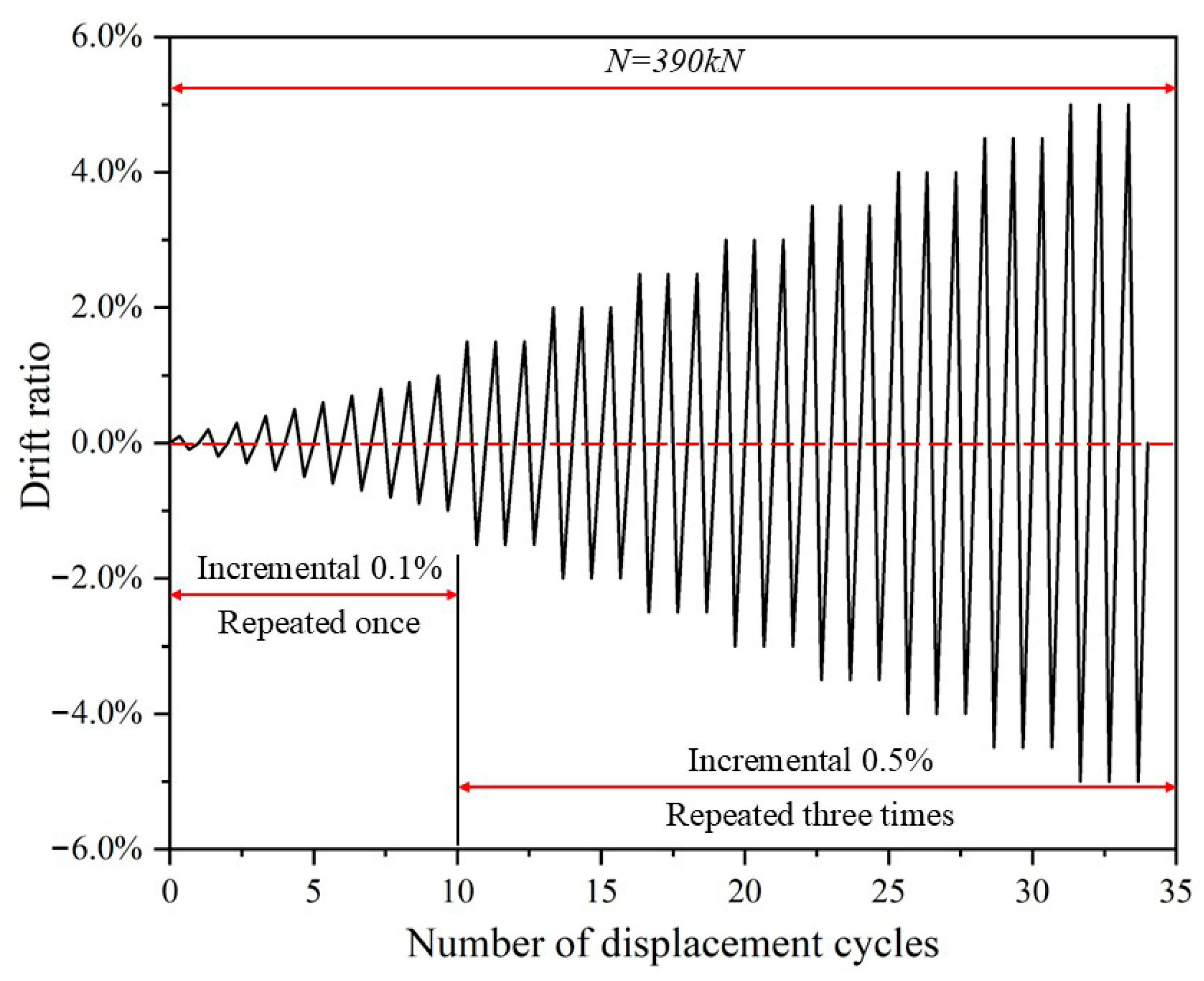 11], which has practical advantages of controllable operation and strong repeatability. This method can effectively separate dynamic factors such as load history and inertial coupling, thereby clearly quantifying the influence mechanism of second-order effects on the basic performance of structures, providing direct and reliable basis for design and evaluation. Although it is difficult to fully simulate dynamic phenomena such as high-frequency and cumulative effects in ground motions, the conclusions obtained still have important engineering benchmark value.
