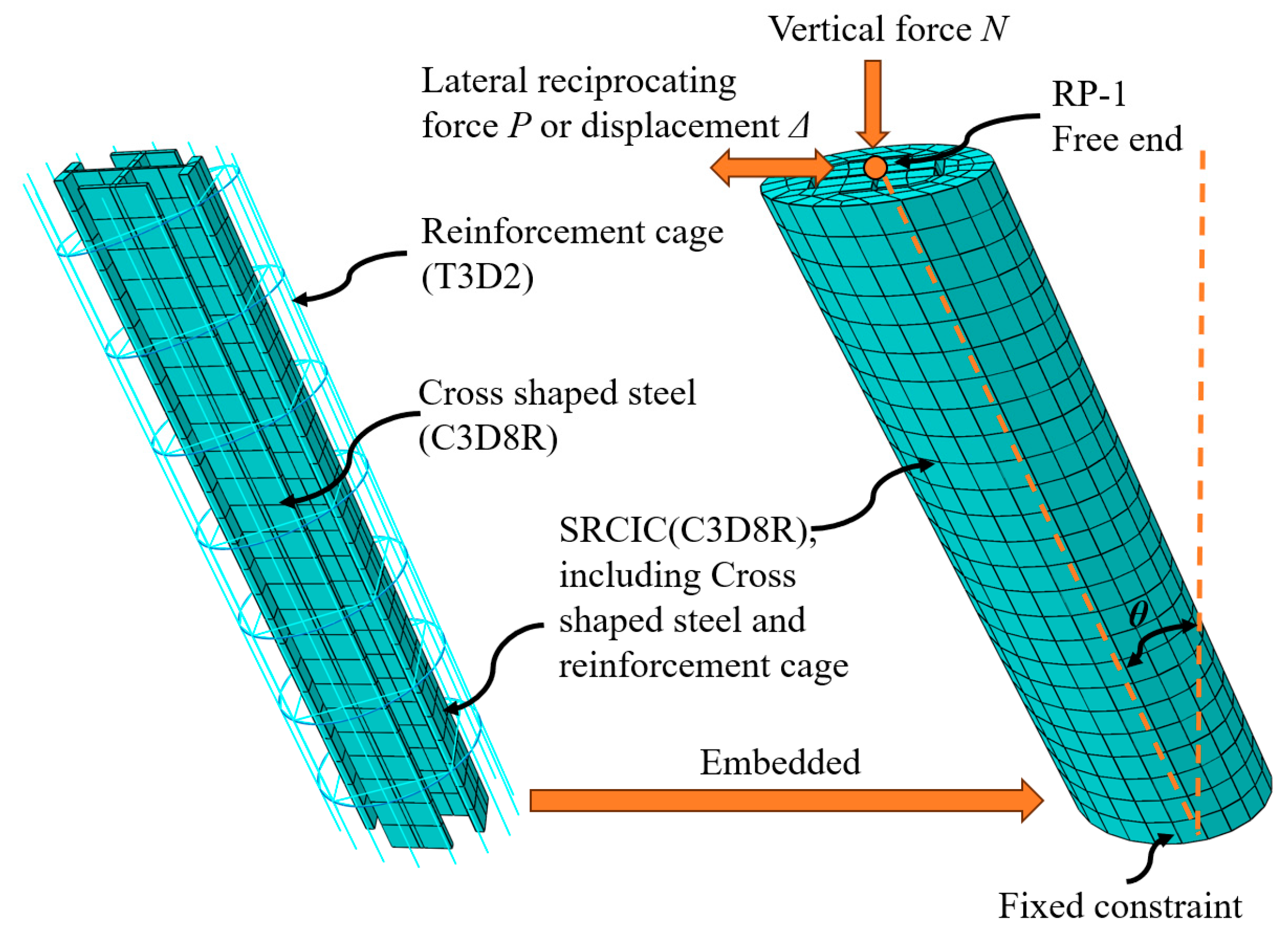 Several factors influence the seismic performance of SRCIC, including inclination angle, steel ratio, reinforcement ratio, and stirrup ratio. An analysis comparing the test outcomes and simulation findings suggests that this finite element model effectively simulates the deformation capacity of SRCIC. Due to the large time and labor cost of experimental research, the finite element model can be used to analyze the influence of the above parameters on the seismic performance of SRCIC. The specific parameters selected for this analysis are as follows: